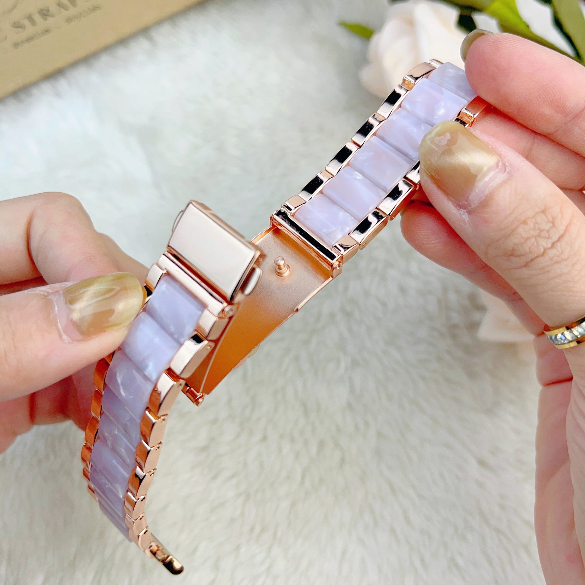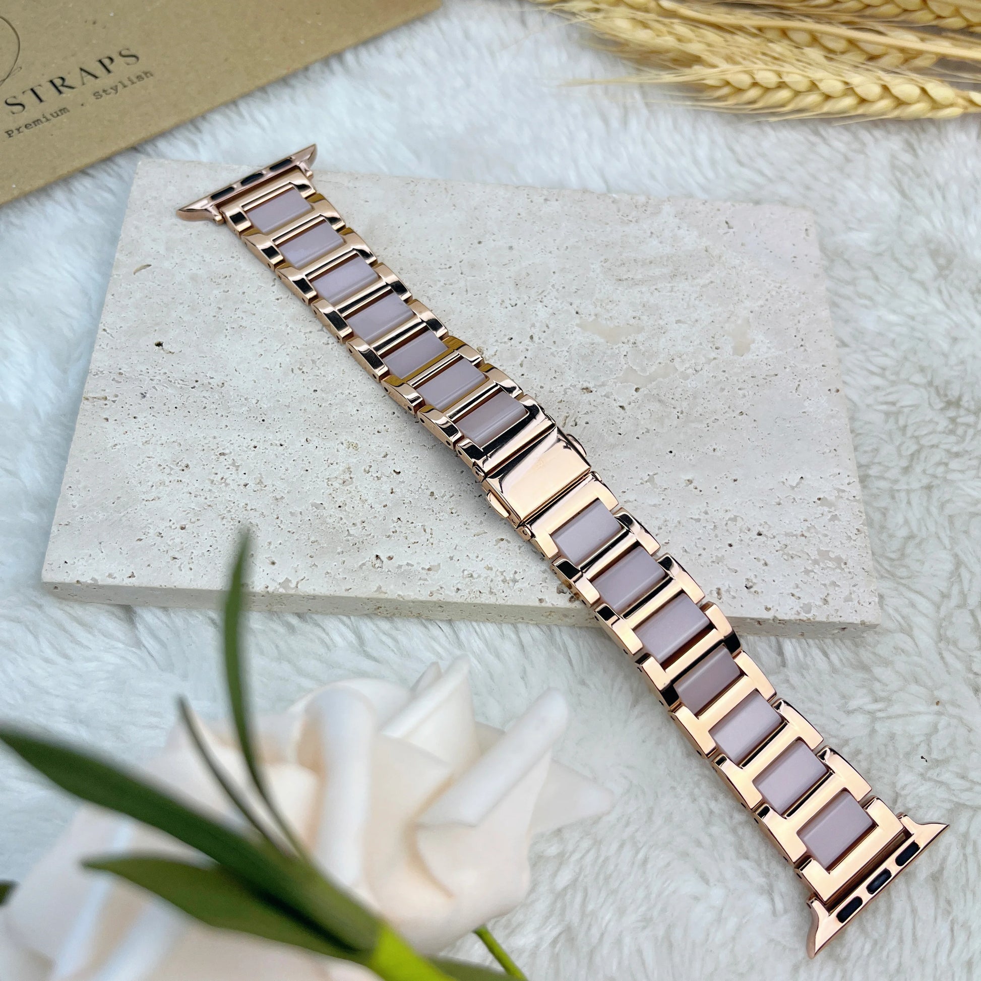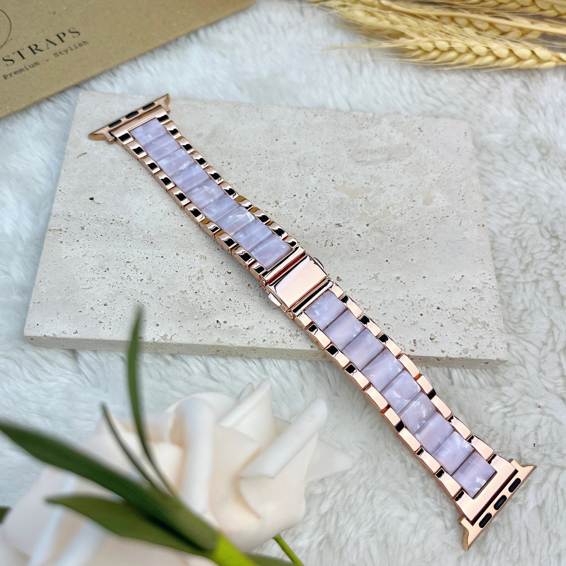 Elevate your Apple Watch with the Cerla Link, a refined statement piece designed for timeless sophistication. Each link is crafted with glossy hardware paired with delicate resin inlays, giving it a soft, luxurious sheen that instantly elevates any look — from daily chic to evening glam.