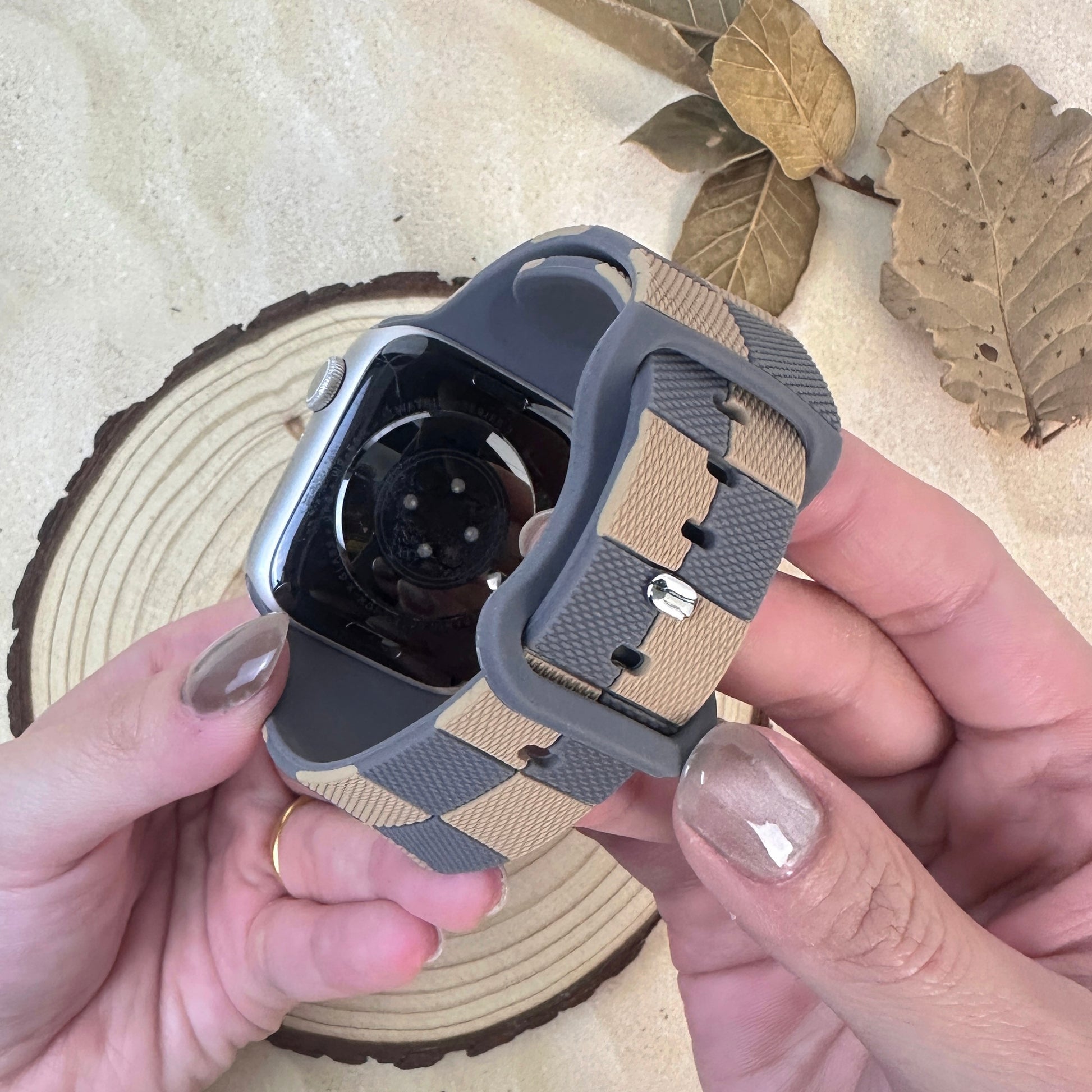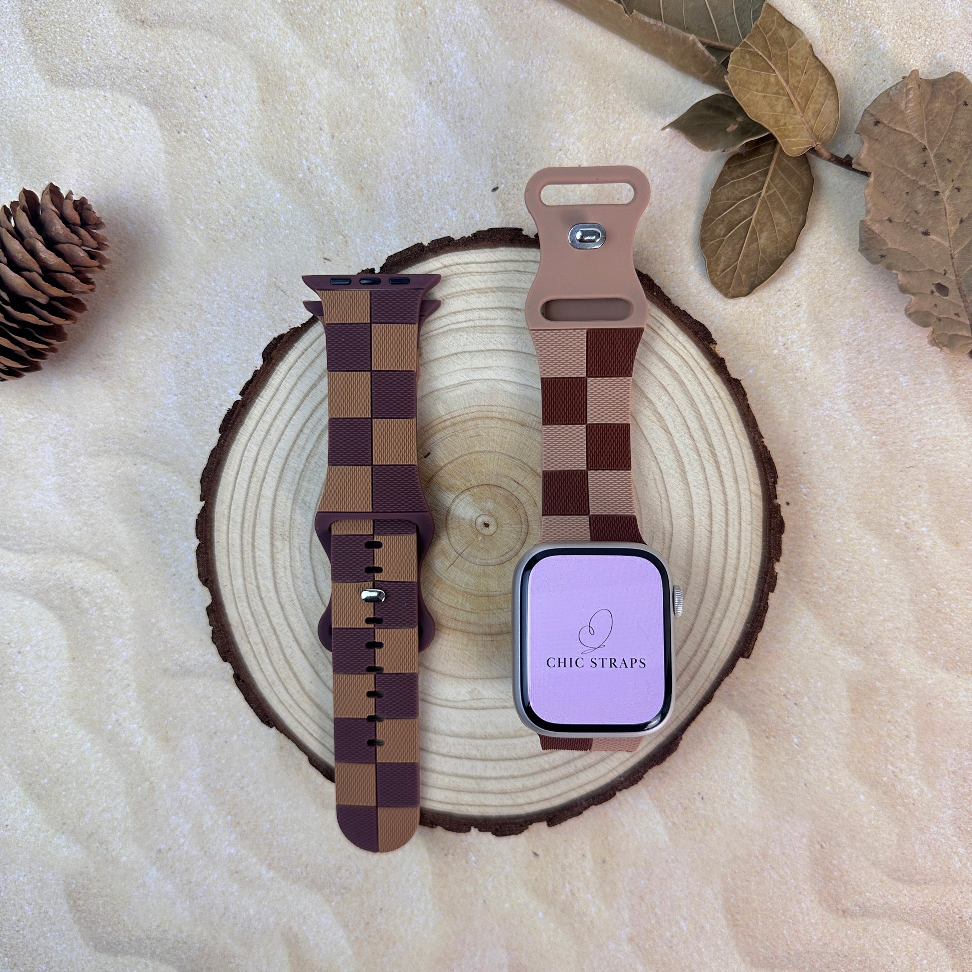 Introducing the Rhea Strap – where understated elegance meets modern charm. This beautifully crafted silicone band for your Apple Watch features a subtle checkerboard pattern in soothing earth tones and soft pastels, offering a refined twist on casual style. The soft, hypoallergenic silicone ensures all-day comfort, while the timeless color palette effortlessly complements both relaxed and polished looks.