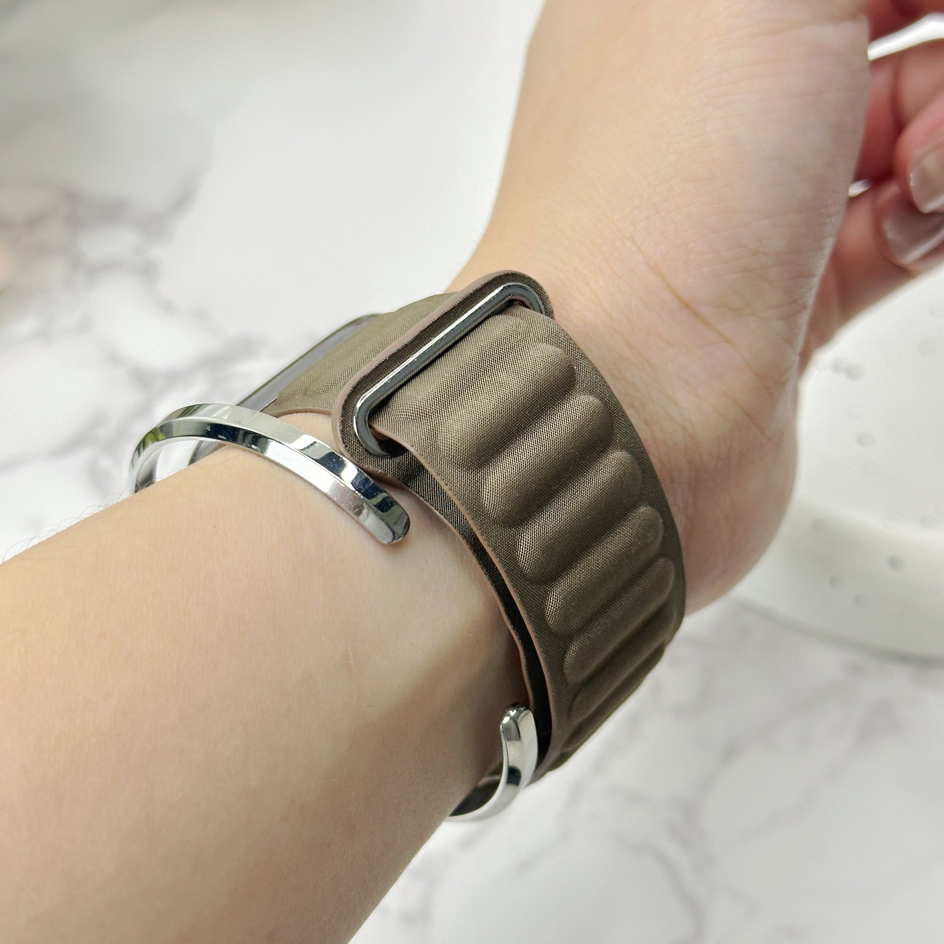 Crafted exclusively for ChicStraps, the Veloura Loop embodies feminine sophistication with its luxurious, quilted fine-woven fabric. Designed for all-day comfort, its soft, suede-like texture feels indulgent against the skin, while hidden magnets ensure a secure yet adjustable fit that moves gracefully with you.